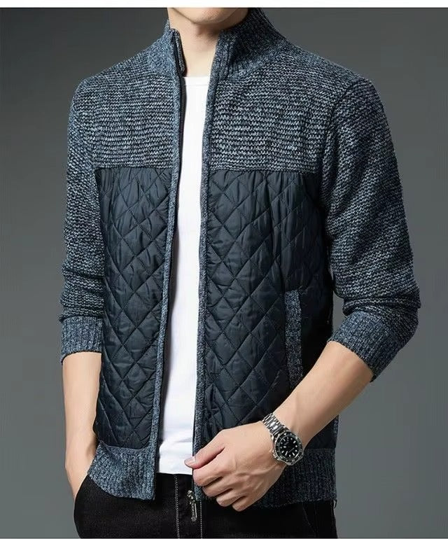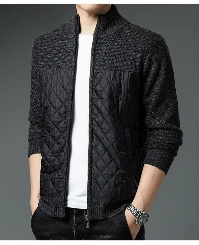 eu design moderno combina o conforto da malha texturizada com o visual sofisticado do matelassê em padrão geométrico, criando um equilíbrio perfeito entre casualidade e elegância.