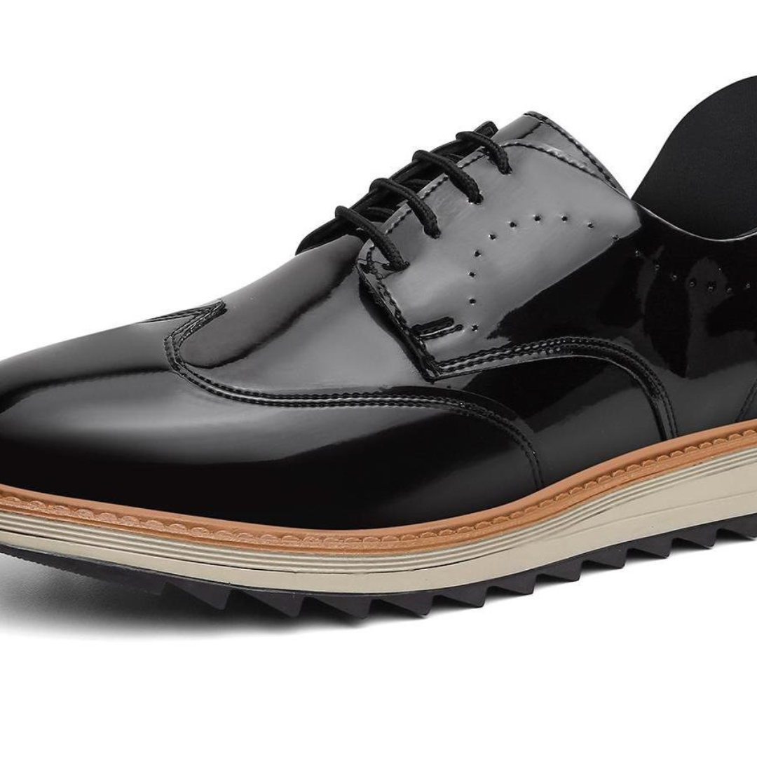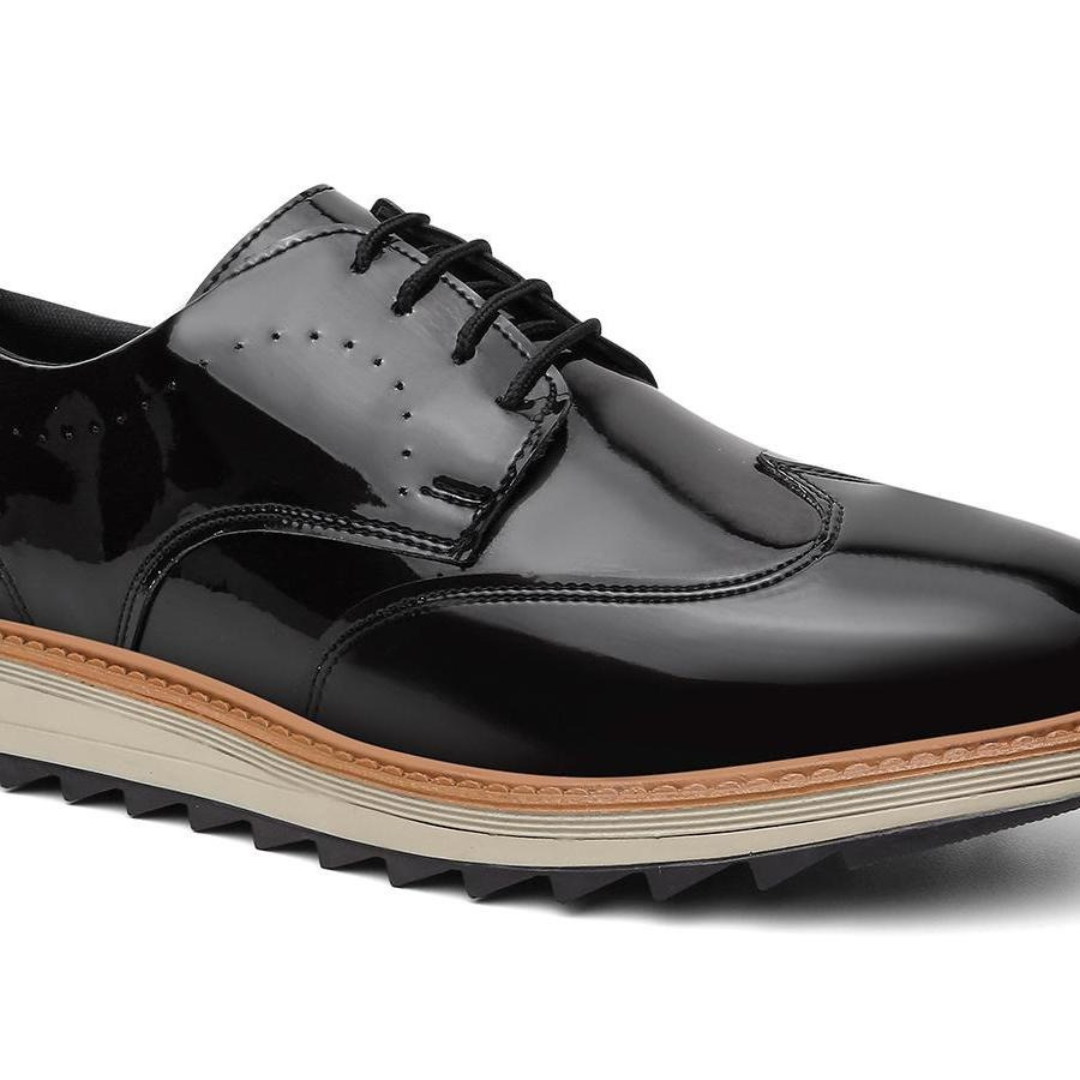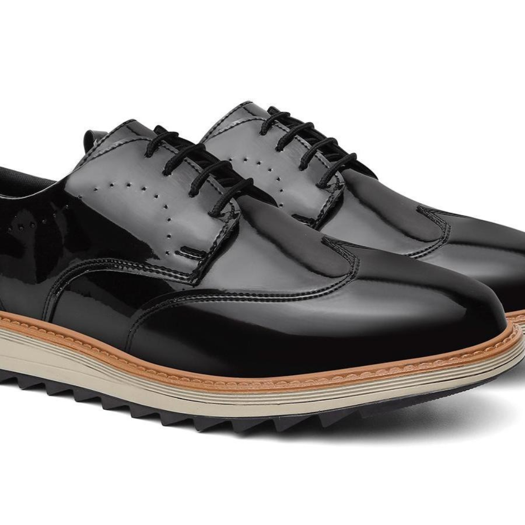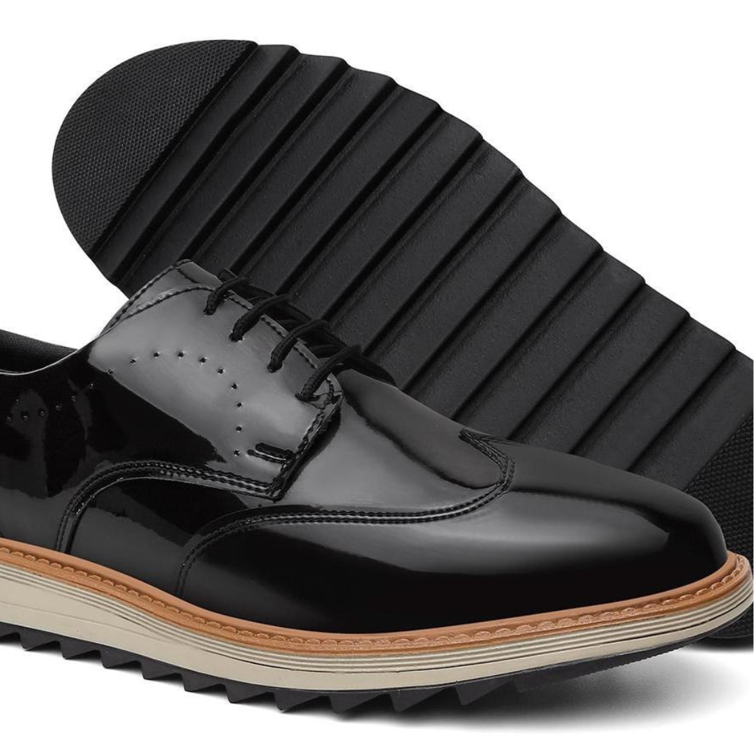 Sapato social em verniz premium, com acabamento brilhante, design robusto e sola antiderrapante. Ideal para eventos, reuniões ou para quem exige presença no dia a dia.